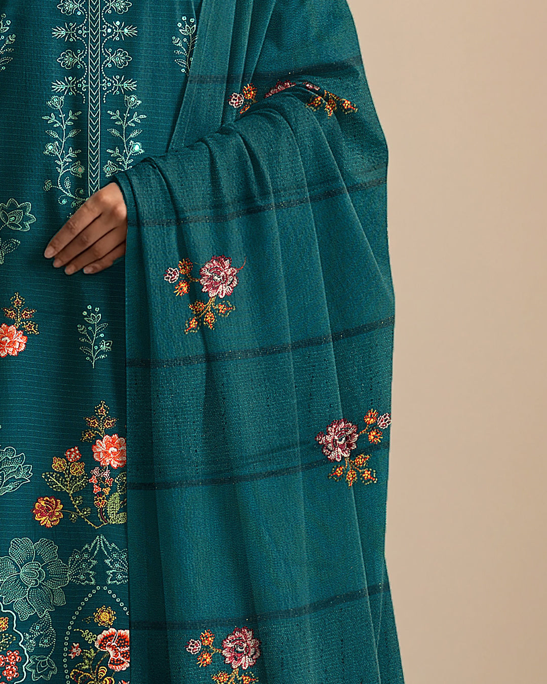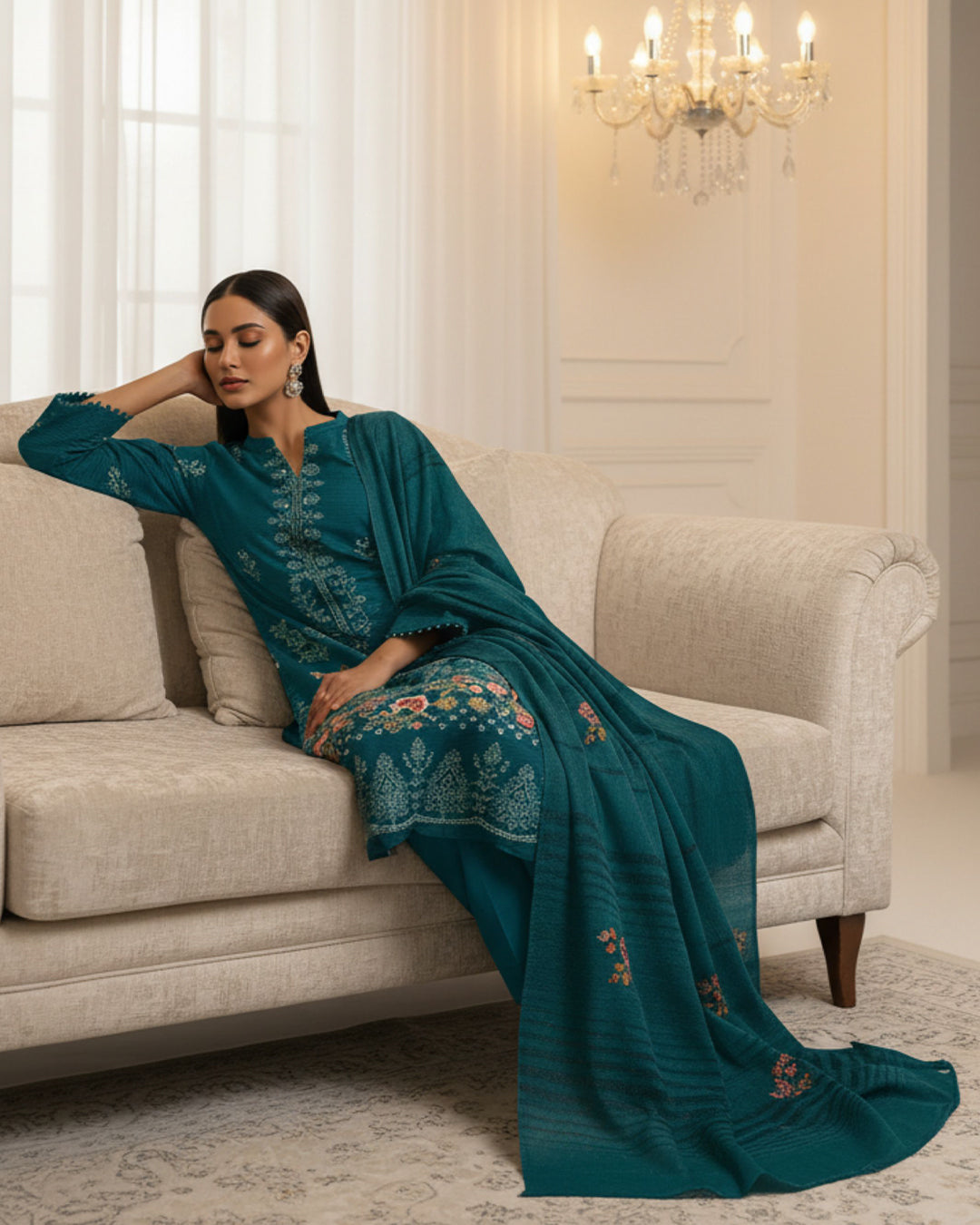 Experience refined winter elegance with RANGON’s Bana Dora Dhanak ensemble, designed for warmth, durability, and timeless style. This premium 3-piece unstitched suit is crafted with classic textures and detailed embroidery, ideal for winter wear and everyday elegance.