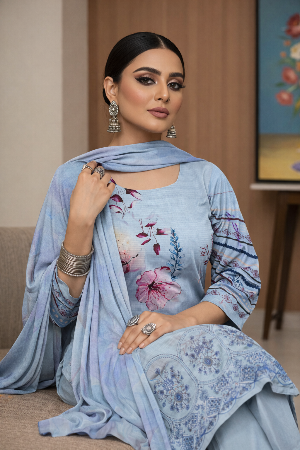 Experience winter elegance with this beautifully detailed Viscose Bana Dora ensemble, crafted for sophistication and comfort.